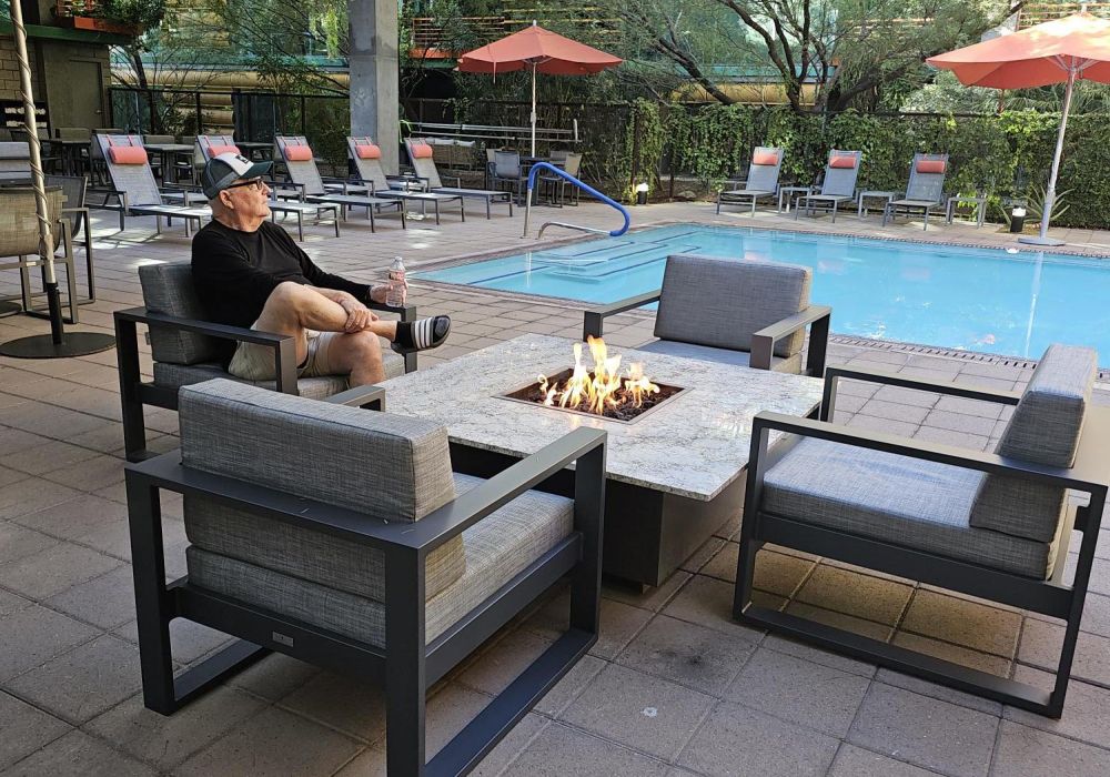 Bob McMillan enjoying the morning air poolside at Optima Sonoran Village®