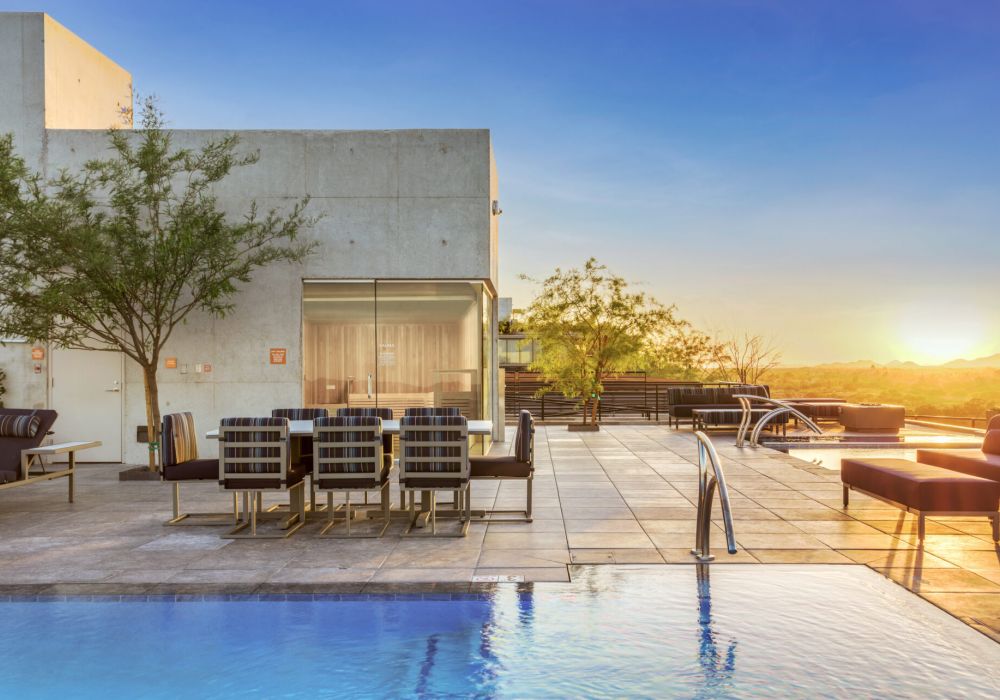 Expansive mountain views from the rooftop sky deck at Optima Kierland Apartments®