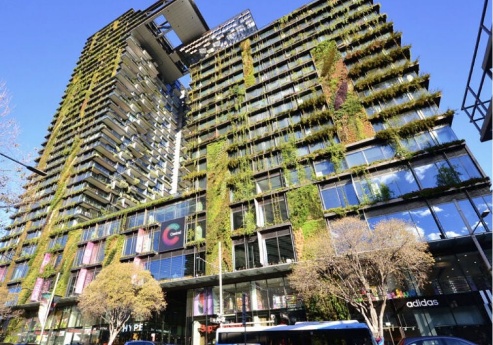 Completed in 2012, One Central Park was built as part of Sydney’s Central Park renewal project. The building is a dual high-rise with a height of more than 380 feet, but it is famously known for its vertical landscaping designed by its architects, Foster and Partners, Ateliers Jean Nouvel and PTW Architects. The vertical landscaping system was a collaboration between French botanist Patrick Blanc, the modern innovator of the green wall, and the architects. One Central Park is home to 350 different species, including both exotic and native verdure, and totaling over 85,000 plants that cascade more than meters down its facade.
